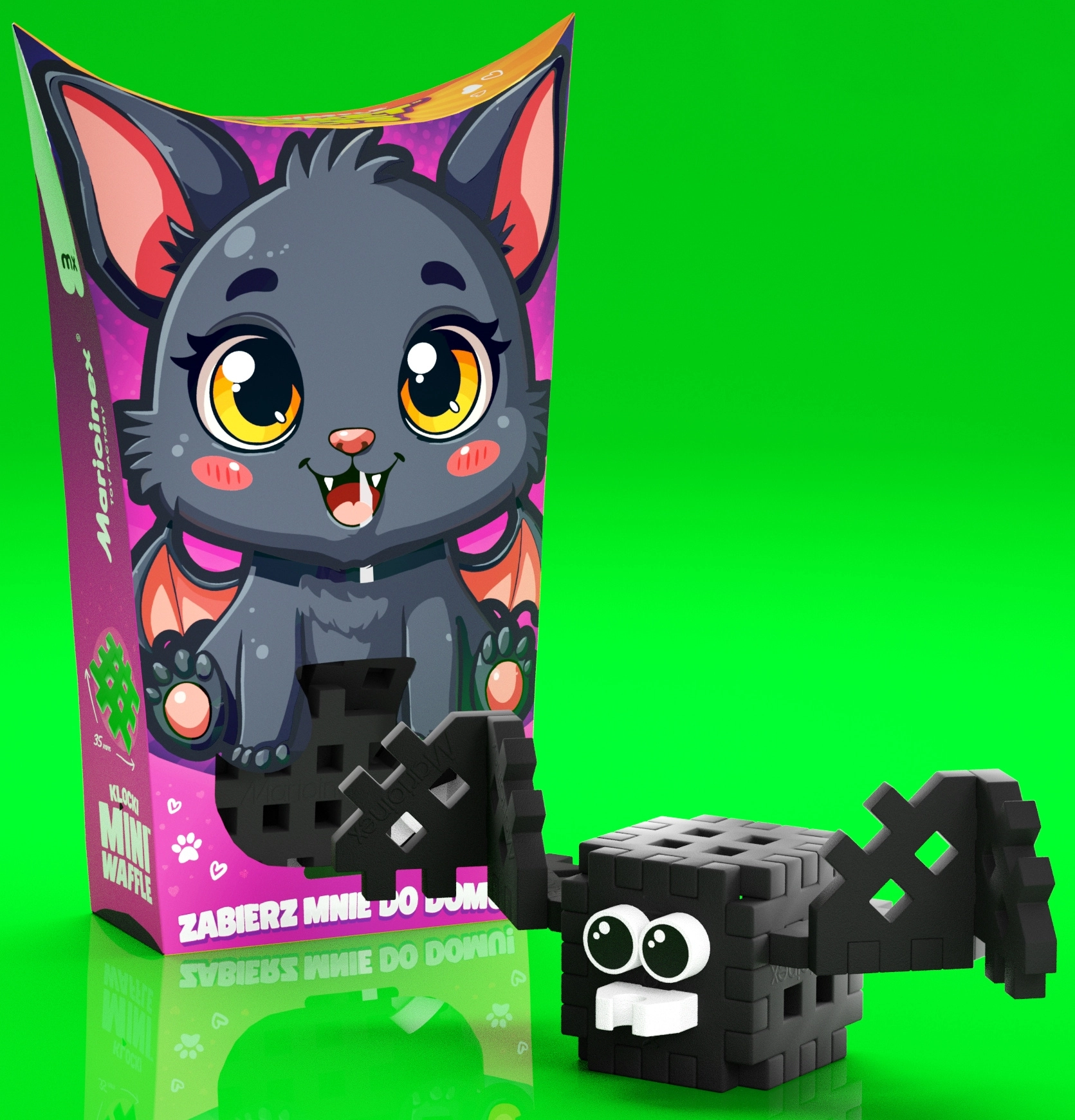 Konstruktor Mini Waffle Pocket Pets – šišmiš idealan je izbor za kratku i dužu igru kod kuće i na putovanjima. Djeca mogu slagati u 2D i 3D, stvarati vlastite priče i širiti kolekciju životinjica Pocket Pets. Set je prikladan za djevojčice i dječake od 3 godine te donosi radost otkrivanja i stvaranja.