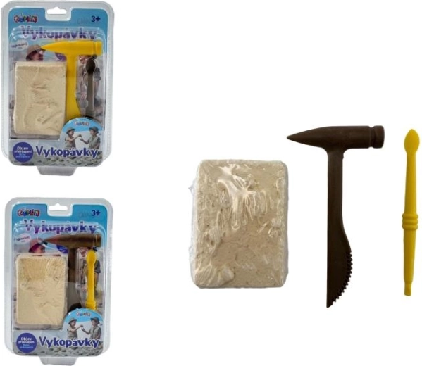 - Gipsani blok sa skrivenim kosturom, dlijeto, čekić, kist