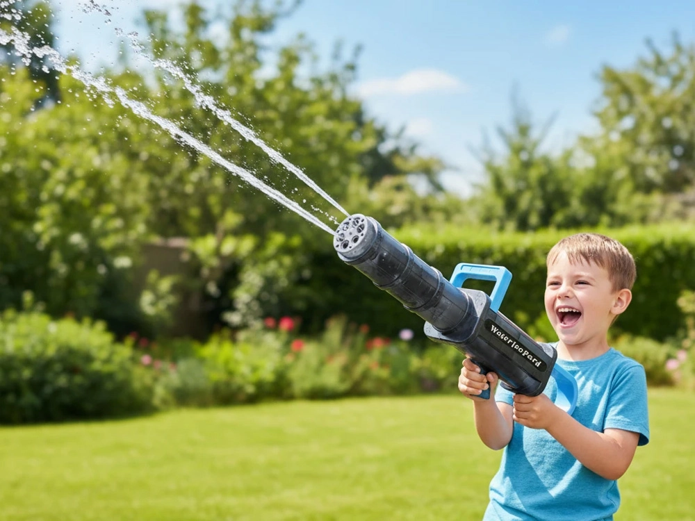 Električni vodeni pištolj Waterleopard idealan je za vrt, jezero ili plažu. Dovoljno je uroniti usisni otvor u vodu, pritisnuti okidač i pištolj će sam uvući vodu – za nekoliko sekundi spremni ste za gađanje. LED osvjetljenje cijevi daje dvobojima efektan ugođaj, a djeca i odrasli uživat će u mnogo aktivne zabave.