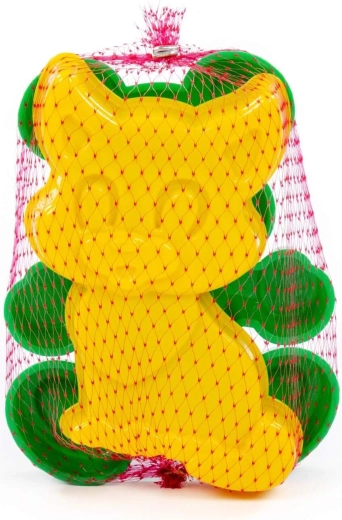 Set ćete lako ponijeti na plažu ili u pješčanik. Isporučuje se u mrežastoj vrećici i u slučajnom koloritu.