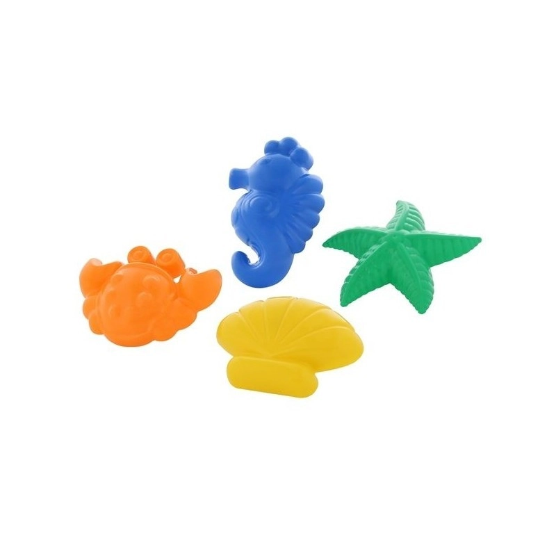 Zabavan set 4 plastična kalupa za pijesak u oblicima raka, morske zvijezde, školjke i morskog konjića pretvorit će svako pješčalište ili plažu u kreativnu radionicu. Djeca lako stvaraju prekrasne otiske, razvijaju finu motoriku, maštu i uživaju u puno zabave na otvorenom.