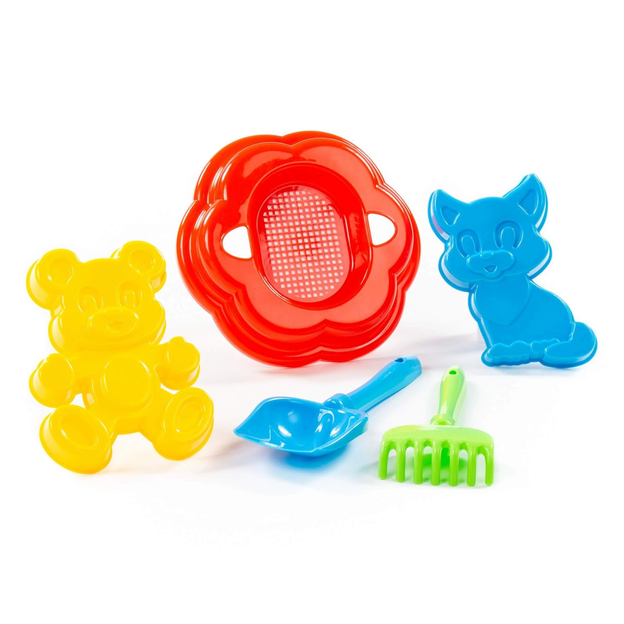 Sadržaj seta: veliko sito u obliku cvijeta s ručkama, lopatica, grablje i dva kalupa (mačić i medvjedić). Set potiče finu motoriku, kreativnost i igru na svježem zraku. Varijante boja se razlikuju, konkretnu boju nije moguće odabrati – šalje se nasumično prema dostupnosti.