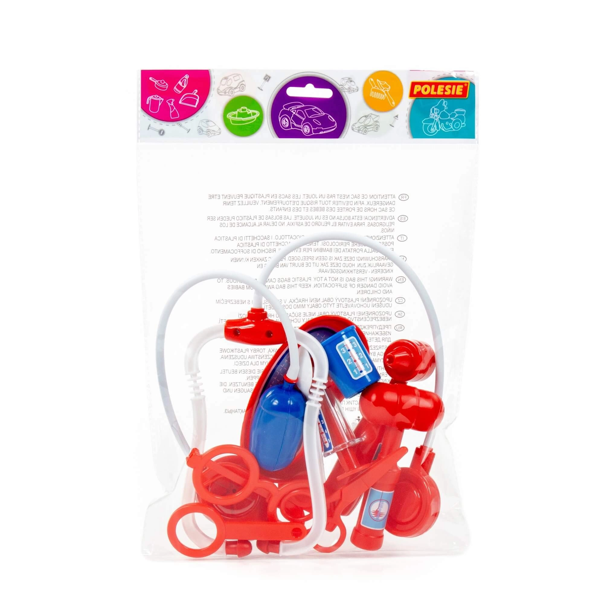 Zabavan set za male liječnike sadrži 11 dijelova medicinskih alata s kojima se djeca mogu igrati doktora i brinuti o pacijentima. U kompletu su ključni dodaci poput stetoskop, injekcija, toplomjer i drugi alati koji potiču maštu, empatiju i društvene vještine kroz zajedničku igru.