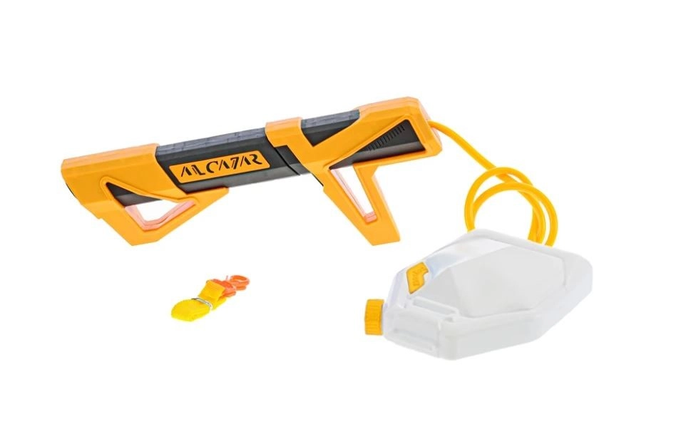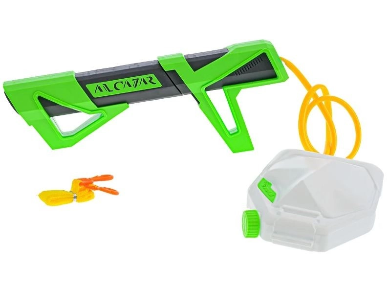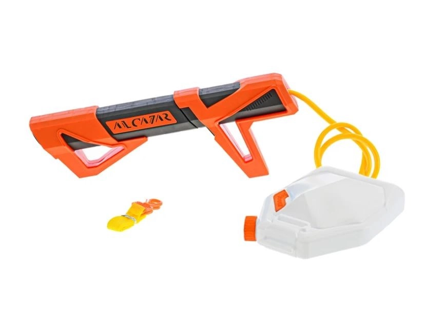 Ovaj vodeni pištolj s vanjskim spremnikom donosi dulju zabavu bez čestog dolijevanja. Dovoljno je napuniti spremnik vodom, pričvrstiti ga pomoću remena i spremni ste za akciju. Ergonomski oblik i niska težina olakšavaju držanje čak i manjoj djeci.