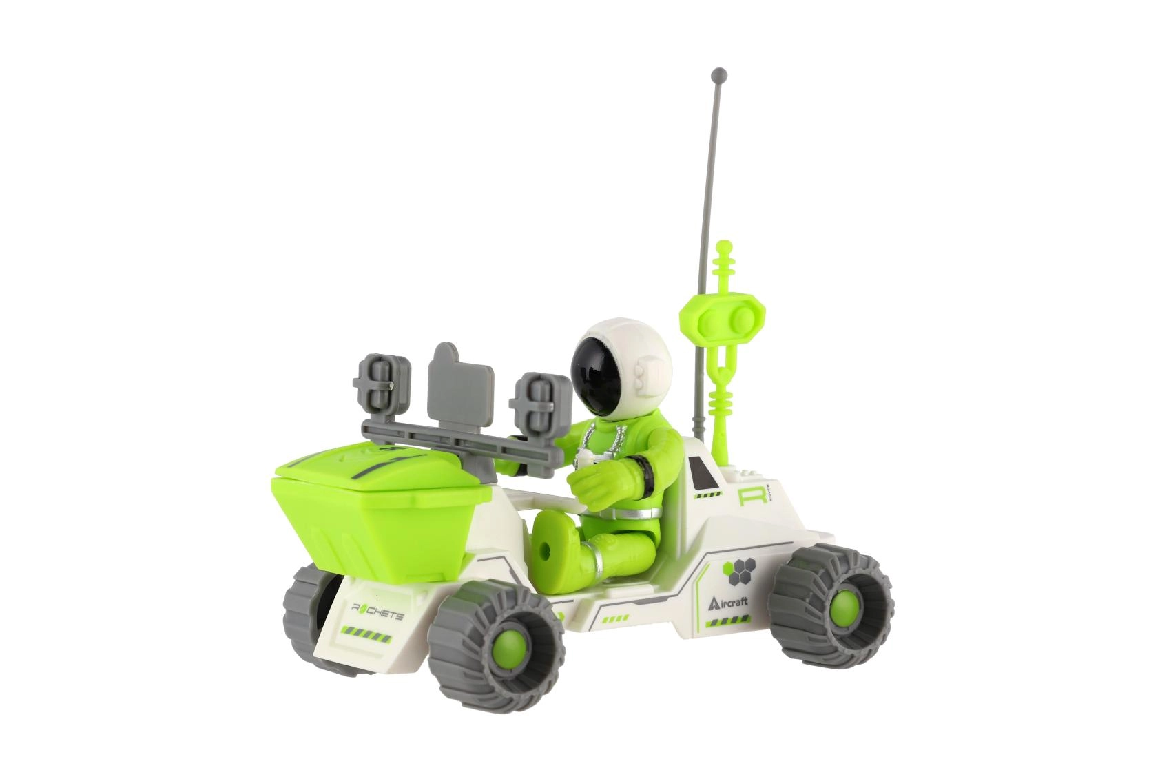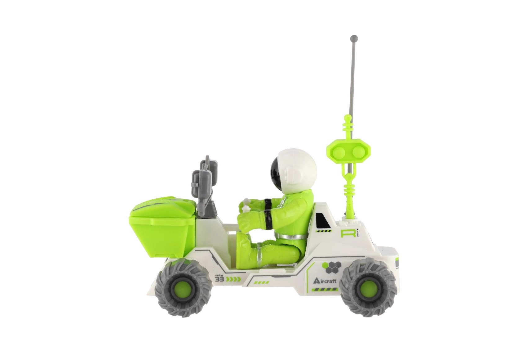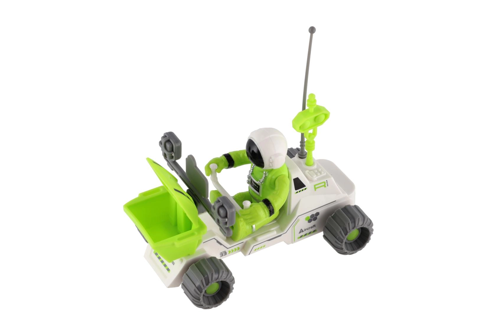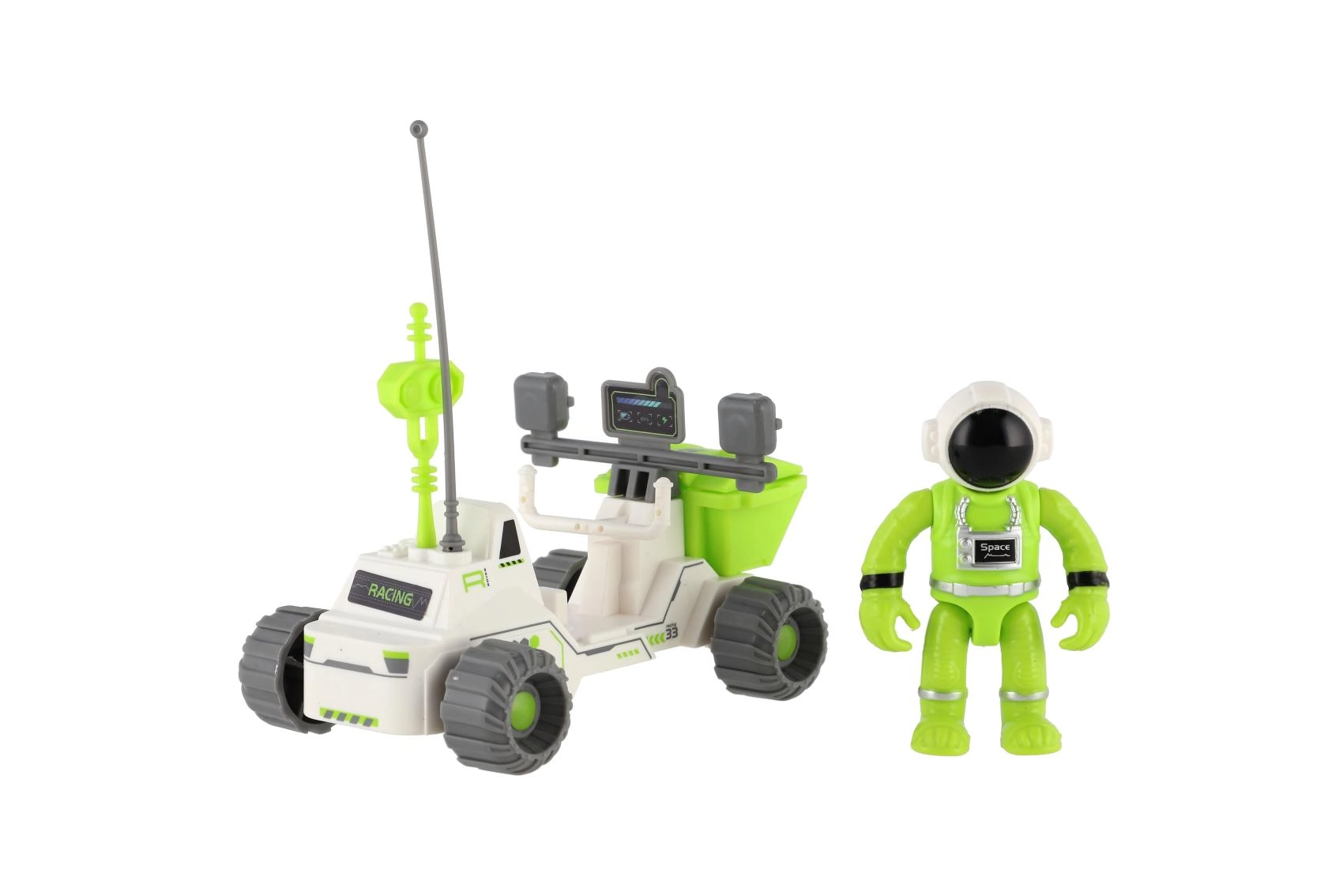 Ovaj svemirski rover idealna je igračka za male istraživače. Kombinira moderan izgled s funkcionalnim značajkama kao što su velike terenske gume, prednja spremna košara i upečatljive antene za “komunikaciju” na izvanzemaljskim planetima. Priložena figurica astronauta uklapa se u kokpit i spremna je za istraživanje nepoznatog terena.