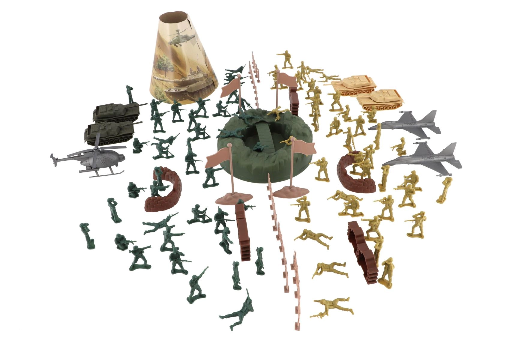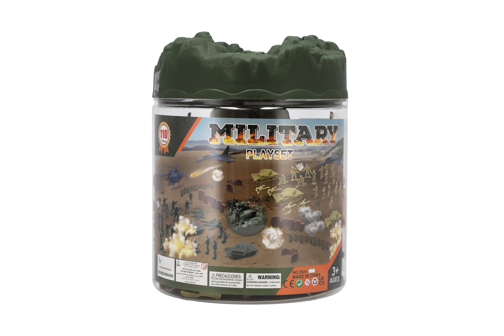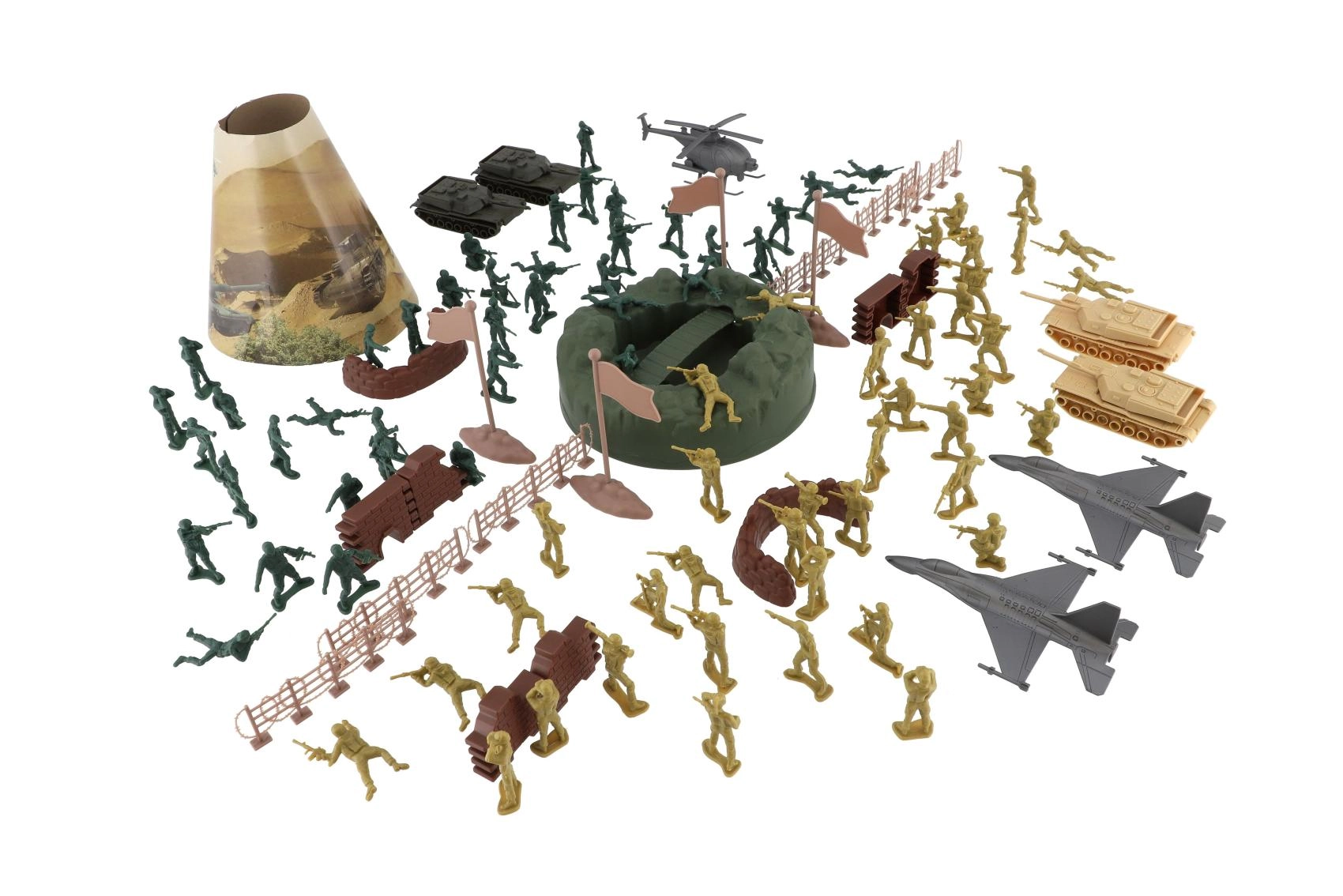 Opsežan vojni set nudi sve što je djeci potrebno za stvaranje napetih borbenih scena. U njemu će pronaći plastične vojnike u više poza, tenkove, zrakoplove i helikoptere, kao i ograde, barikade, zastave i terenski element. Zahvaljujući bogatoj opremi lako je graditi baze, planirati napredovanje i razvijati strategiju.