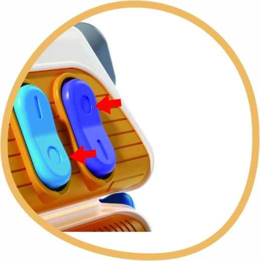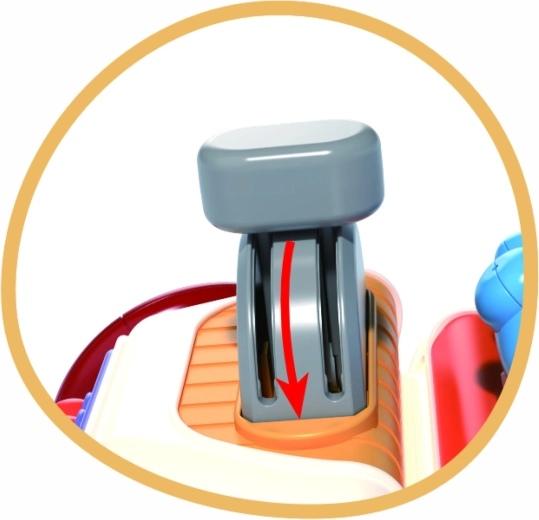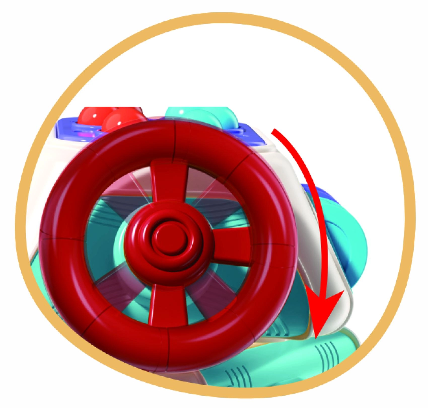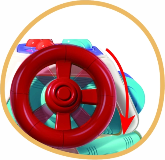 Gornji propeler i okreti kotačići motiviraju dijete na hvatanje i glatke pokrete, čime prirodno razvijaju koordinaciju oko–ruka.