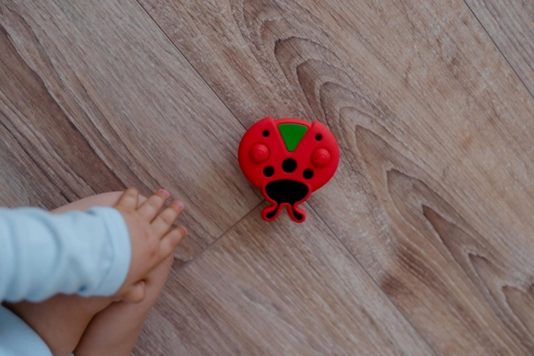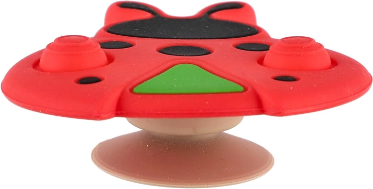 Ova senzorna igračka u obliku bubamare idealna je za prvo istraživanje svijeta. Zahvaljujući kombinaciji mekog silikona i čvrste plastike, ugodno leži u ruci, sigurna je i podnosi svakodnevnu upotrebu. Vakuumska čašica omogućuje lako pričvršćivanje na stol, hranilicu ili kadicu, pa igračka ostaje na mjestu i dijete je može udobno istraživati.