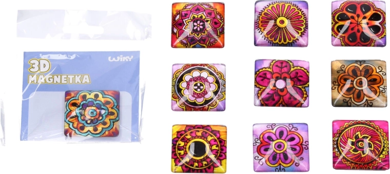 Stilizan stakleni magnet s motivom mandale dimenzija 4 × 4 cm odlično će osvježiti vaš hladnjak, ploču ili ured. Na izbor je 10 različitih varijanti s izraženim bojama i preciznim detaljima. Izdržljivo staklo osigurava dug vijek trajanja, a jak magnet pouzdano prianjanje bilješki, fotografija i poruka.