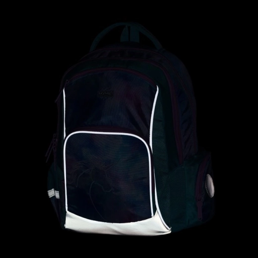 Pametna unutarnja podjela s dva glavna pretinca, prednjim džepom i bočnim džepovima (otvoreni i na patent) olakšava pregledno spremanje udžbenika, bilježnica i užine. Vodonepropusno čvrsto dno štiti sadržaj i od zaprljanja. Praktične kukice skraćuju duge trake, a reflektirajući elementi povećavaju vidljivost i sigurnost na putu do škole.