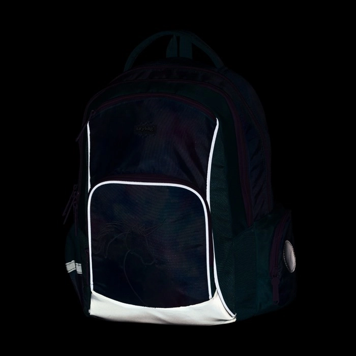 Stilski školski ruksak Oxy Go Unicorn s pastelnim galaktičkim motivom privlači na prvi pogled. Nudi anatomski oblikovana i prozračna leđa, podstavljene i podesive naramenice, velikodušan spremišni prostor od 22 l s mnogo džepova i čvrsto vodonepropusno dno. Ne nedostaju reflektirajući elementi za sigurnost i promišljena organizacija za svakodnevno nošenje u školu.