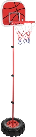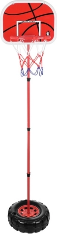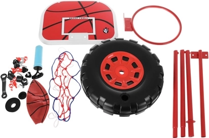 Koš je opremljen željeznim obručem i čvrstom pločom dimenzija 38 × 29,5 cm, što povećava izdržljivost cijele konstrukcije pri čestoj uporabi. U paketu se nalazi sve potrebno – lopta, ručna pumpica, montažni elementi i alat – igra može započeti odmah nakon brze i jednostavne montaže.