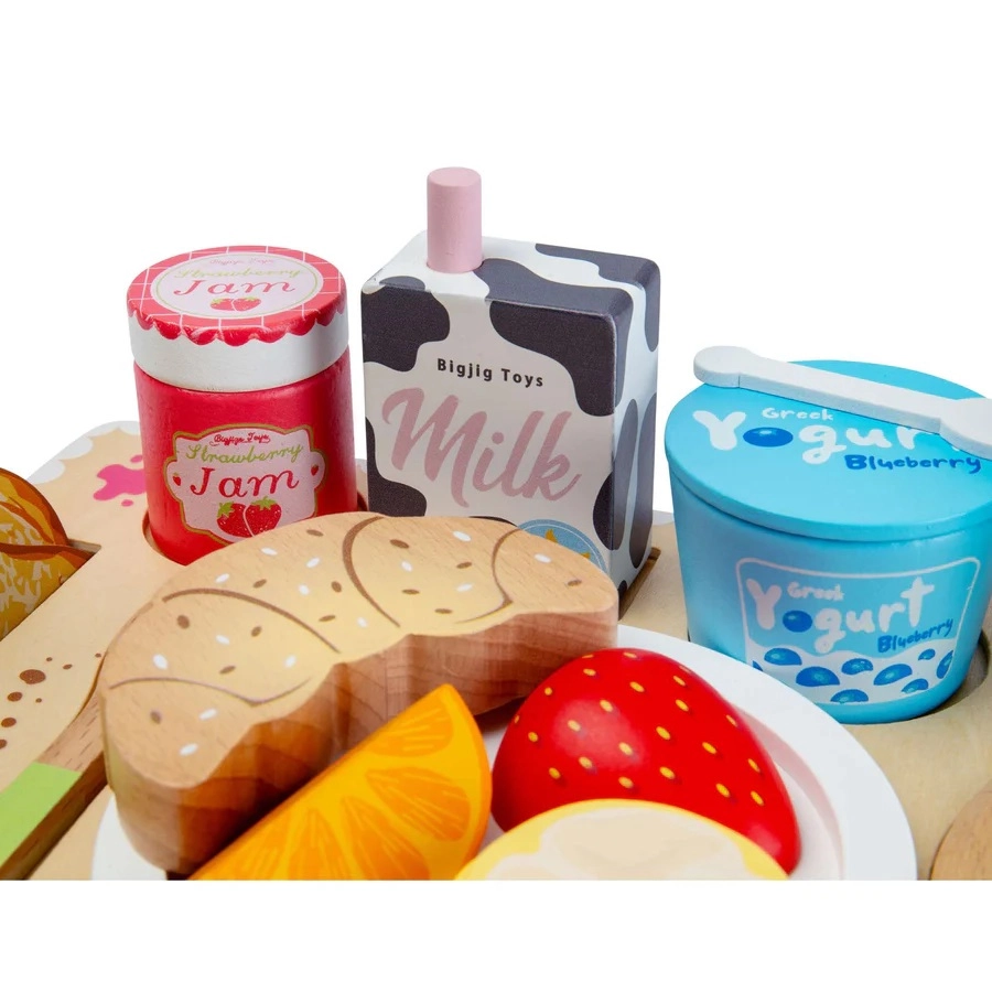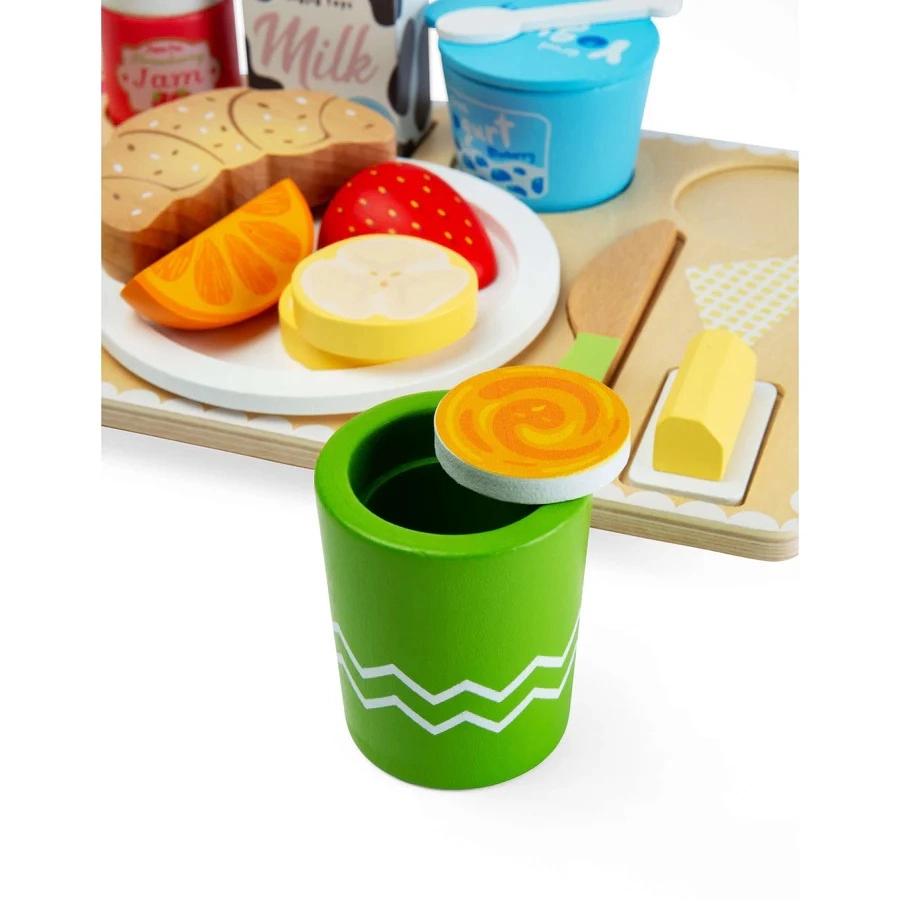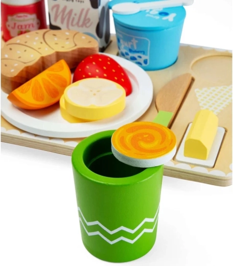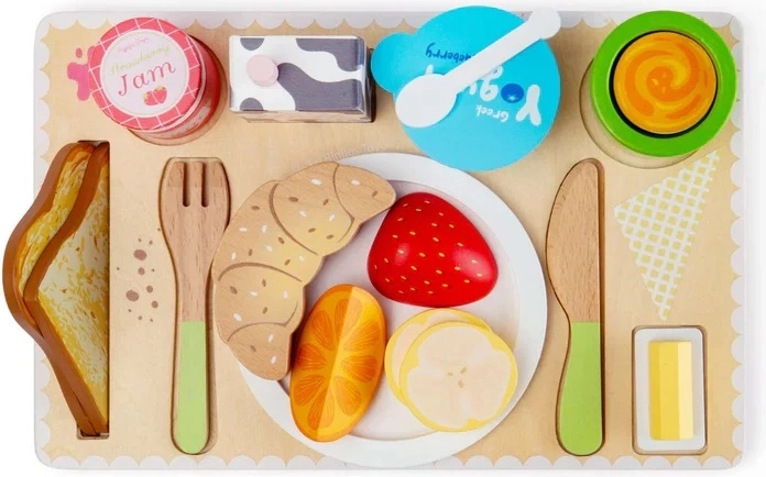 Priredite djeci radost igre domaćinstva sa stilskim drvenim poslužavnikom punim doručkastih poslastica. Set od kvalitetnog FSC certificiranog drva donosi bogatu opremu, realistične detalje i potiče finu motoriku, kreativnost te društvene vještine kroz igru posluživanja.