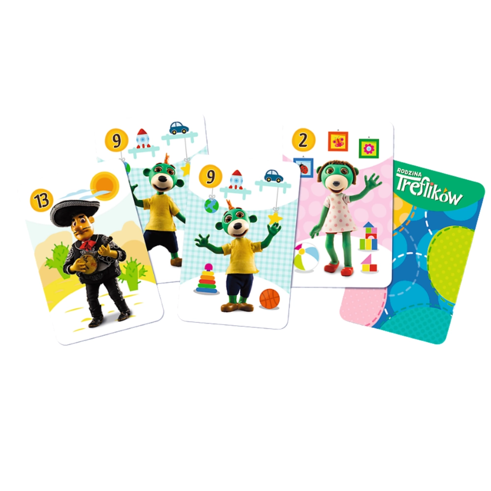 Šarena kartaška igra „Piotruś” s likovima iz omiljene serije Obitelj Trefik brenda Trefl donosi zabavu za najmlađe. Izdržljive kartice podnose puno partija, razvijaju zapažanje, pamćenje i koncentraciju te su idealne za igru kod kuće, u vrtiću i na putovanjima.