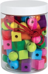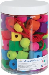 Šarene drvene maxi perle su idealna pomagala za djecu od 3 godine koji žele vježbati svoju spretnost i ujedno se zabaviti. Ovaj set sadrži 92 dijela različitih oblika i boja koje se mogu nizati na priloženu čvrstu špagu.