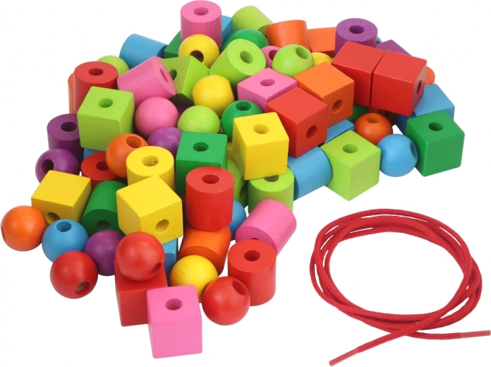 Drvene perle dolaze u raznim oblicima, kao što su kugle i kocke, i u živopisnim bojama koje pomažu djeci prepoznati boje.