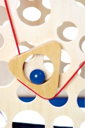 Ova velika motorička igra u izvedbi A-okvira donosi djeci od 3 godine bezbroj zabave i vježbanja vještina. Zadatak je pomoću uzica pomicati kuglicu po ploči s otvorima što više – bez pada. Igra prirodno potiče strpljenje, spretnost i suradnju, a izvrsno je rješenje za rođendanske zabave i vrtiće.