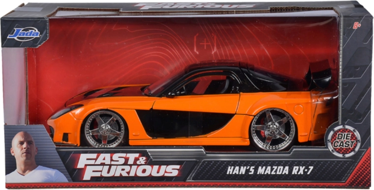 Autentičan model vozila MAZDA RX-7 iz filmske serije FAST & FURIOUS brenda Jada Toys oduševit će i kolekcionare i djecu. Nudi metalnu karoseriju, otvarajuća vrata i poklopac motora te precizno obrađene detalje. Duljina modela je 19 cm, idealno kao dekoracija i za igru.