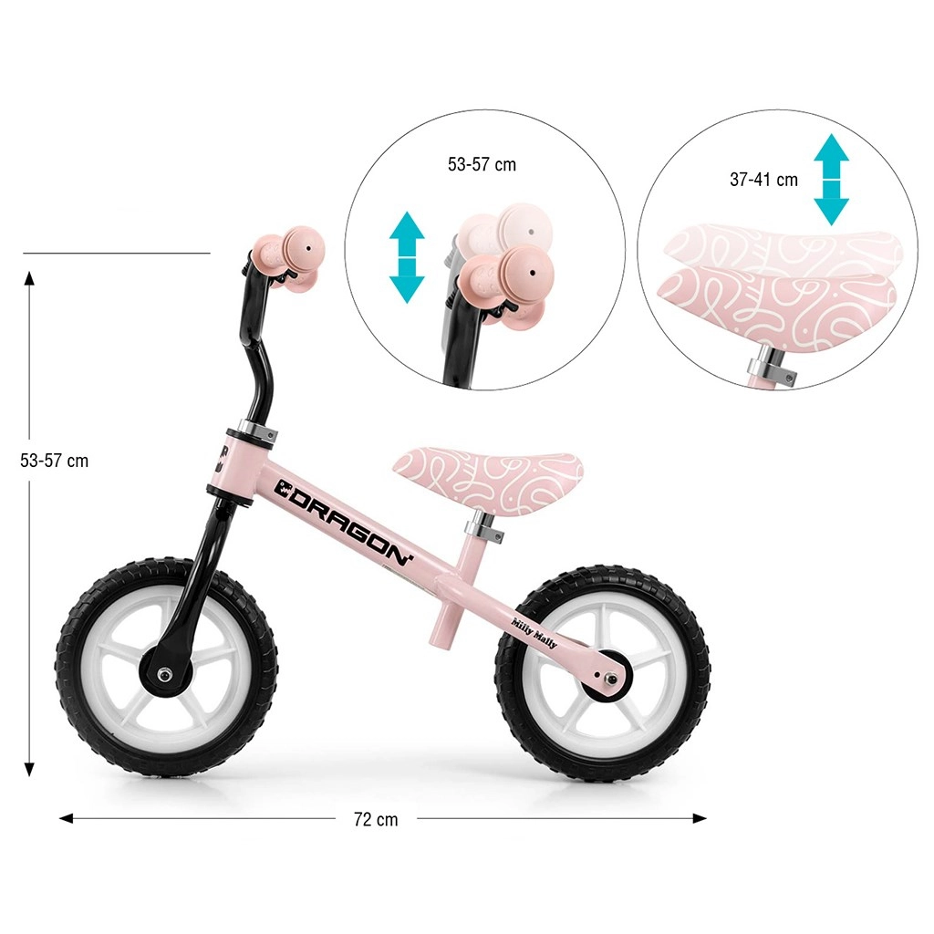 Započnite učenje ravnoteže s guralom MILLY MALLY Dragon u ružičastoj boji. Vožnja bez pedala pomaže djeci da se lako usredotoče na održavanje ravnoteže i koordinaciju. Lagani, ali izdržljiv čelični okvir, pjenasti kotači 10" za glatku vožnju, podesivo sjedalo i upravljač te ograničenje zakreta upravljača za veću sigurnost – sve što malom vozaču treba. U kompletu je i zvonce koje djeca vole.