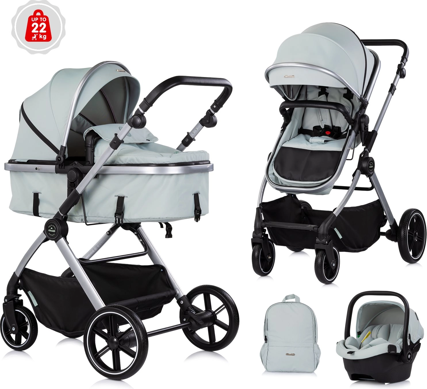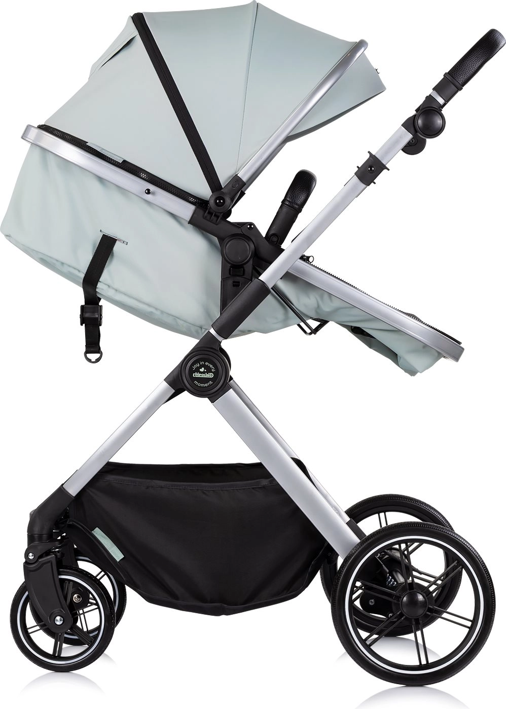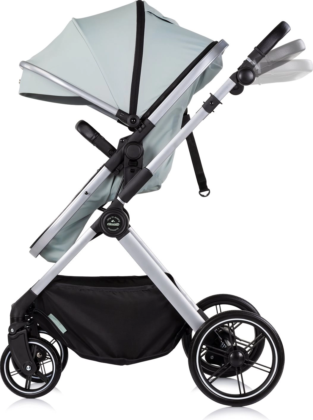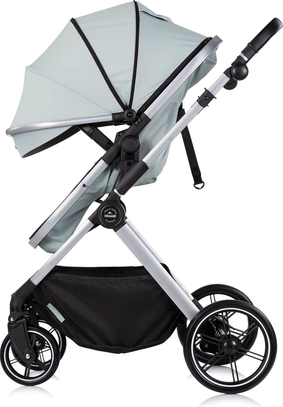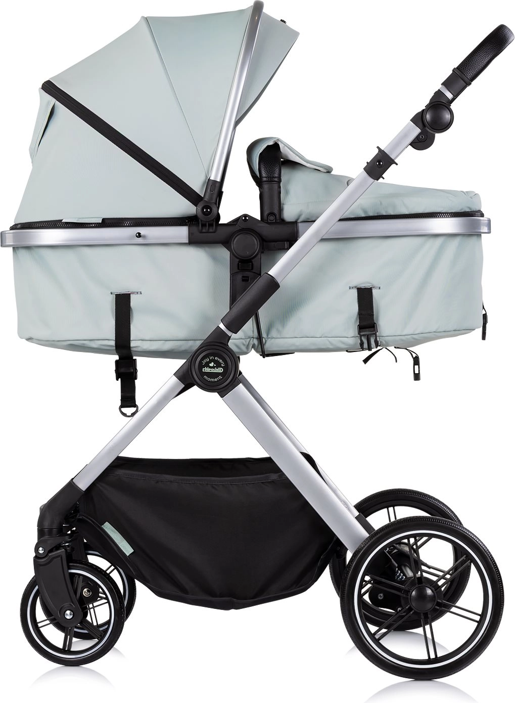 Sjedeći dio lako pretvorite u duboku košaru za novorođenče. Idealno rješenje od rođenja bez potrebe za dodatnim nastavcima.