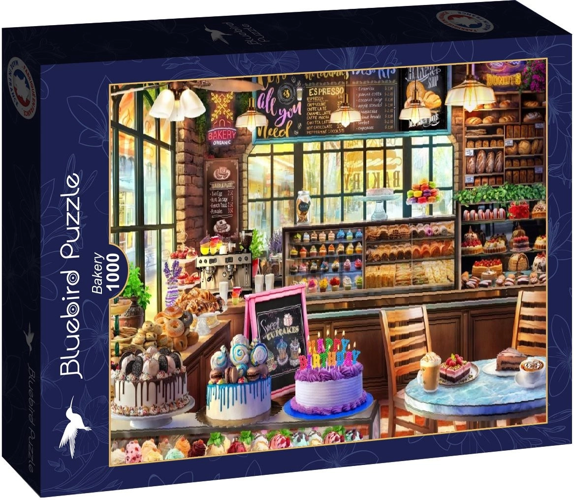 Uživajte u opuštanju dok slažete prekrasnu sliku s motivom ugodne pekarnice. Ova kvalitetna slagalica od 1000 dijelova nudi precizno rezanje, intenzivne boje i ugodan format za svakog ljubitelja puzzli.