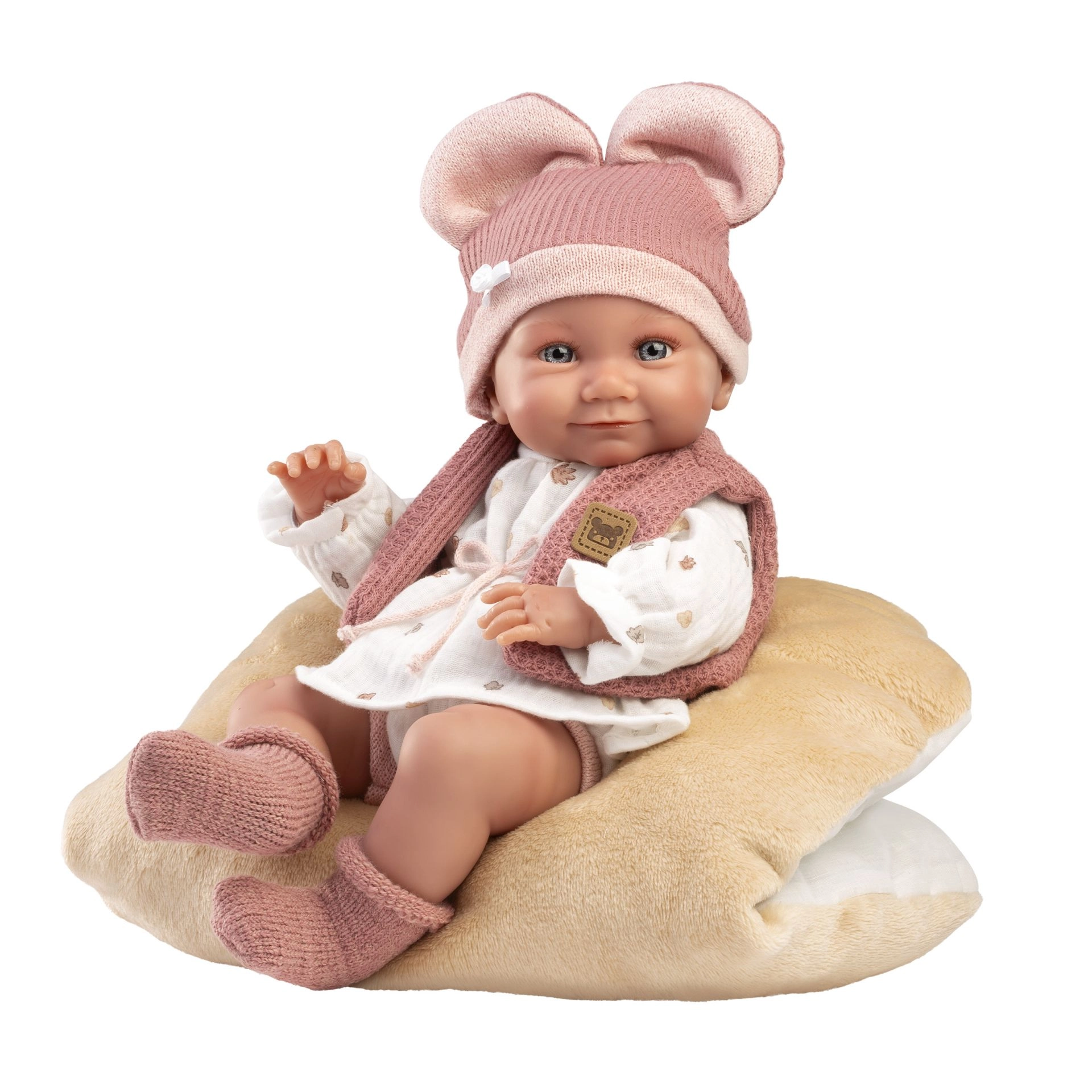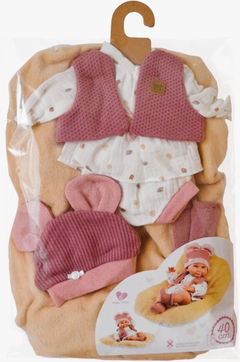 Stilizan 5-dijelni set odjeće za lutku NEW BORN veličine 40–42 cm razveselit će svaku malu mamu. Sadrži 4 komada odjeće i obostrani jastučić koji se može koristiti kao podloga. Ručno proizvedeno u Španjolskoj, pakirano u praktičnu vrećicu s vješalicom. Idealno od 3 godine.