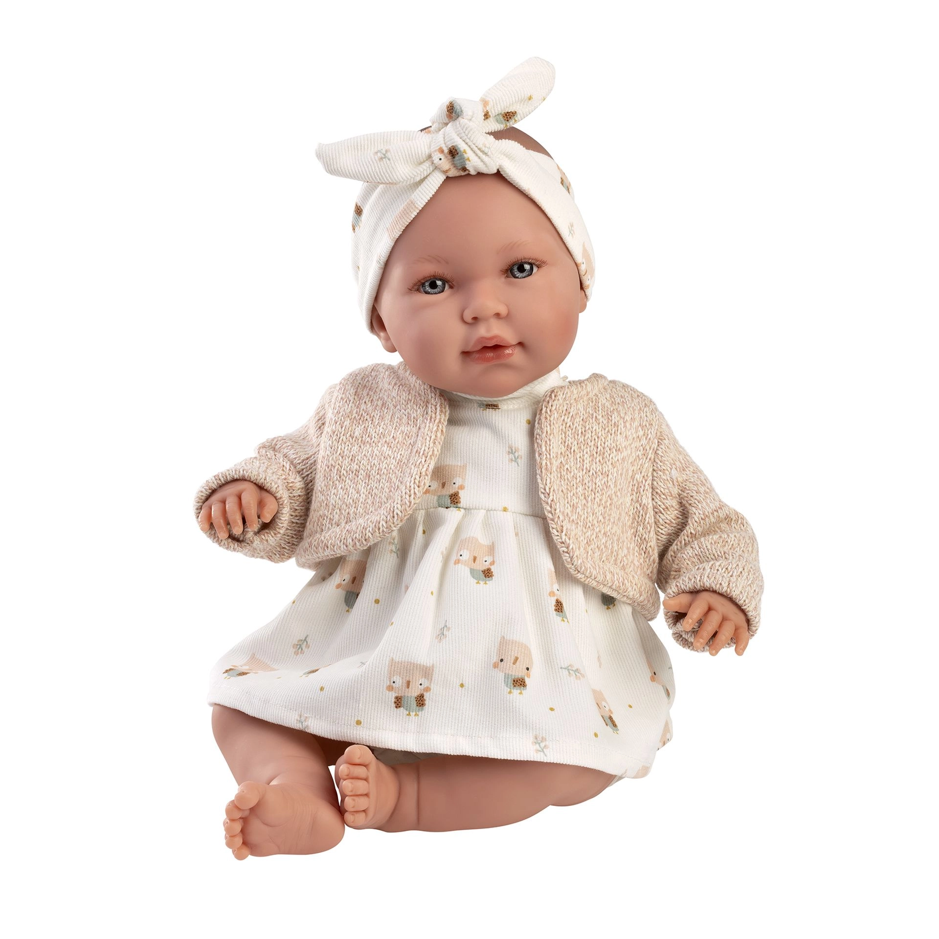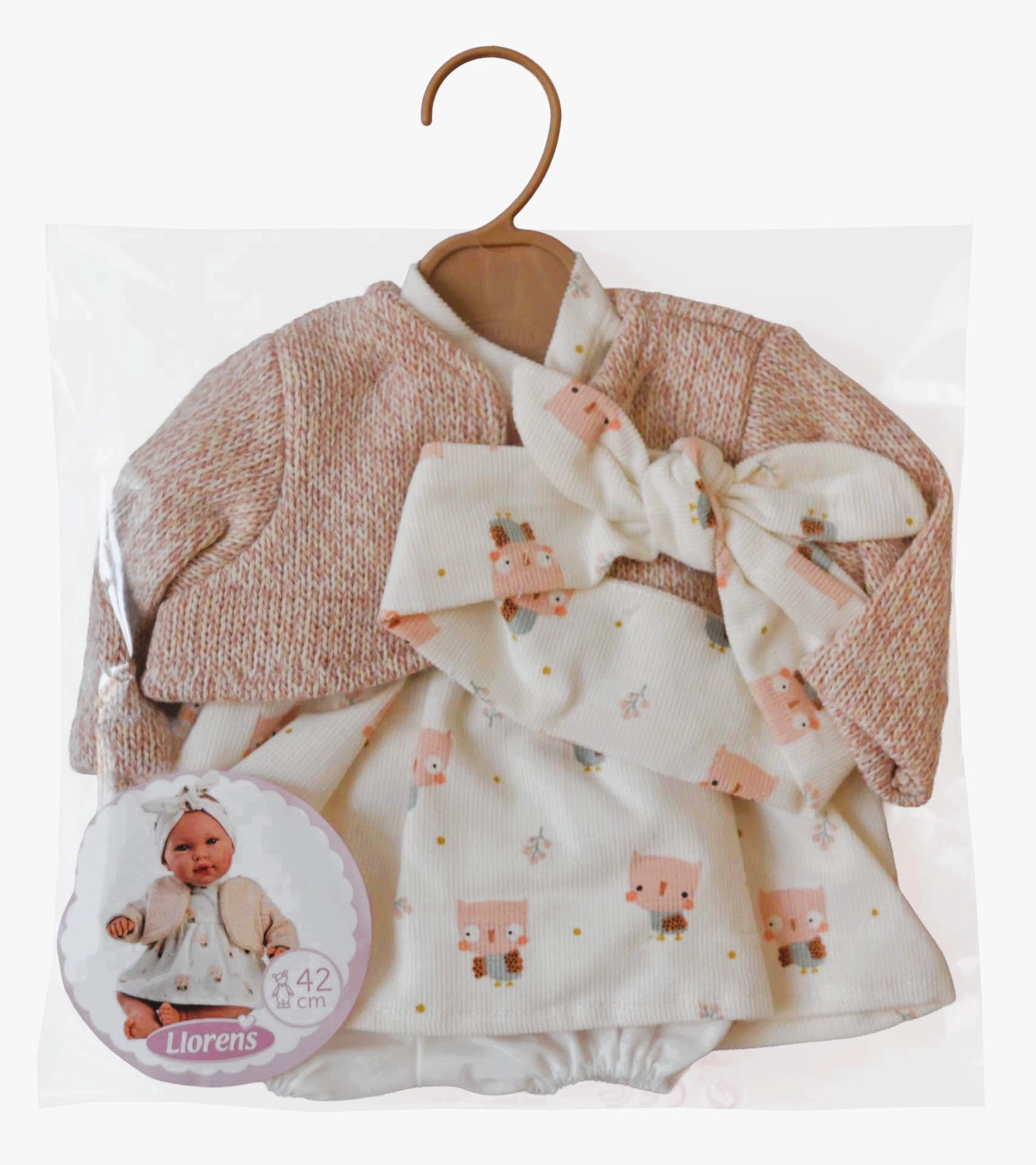Stilna 4‑dijelna odjeća za lutke NEW BORN brenda Llorens za veličinu 40–42 cm razveselit će svaku malu mamu. Kvalitetna ručna izrada u Španjolskoj jamči preciznu obradu i dug vijek trajanja. Praktično pakiranje u plastičnoj vrećici s vješalicom olakšava spremanje i prenošenje. Pogodno za djecu od 3 godine.