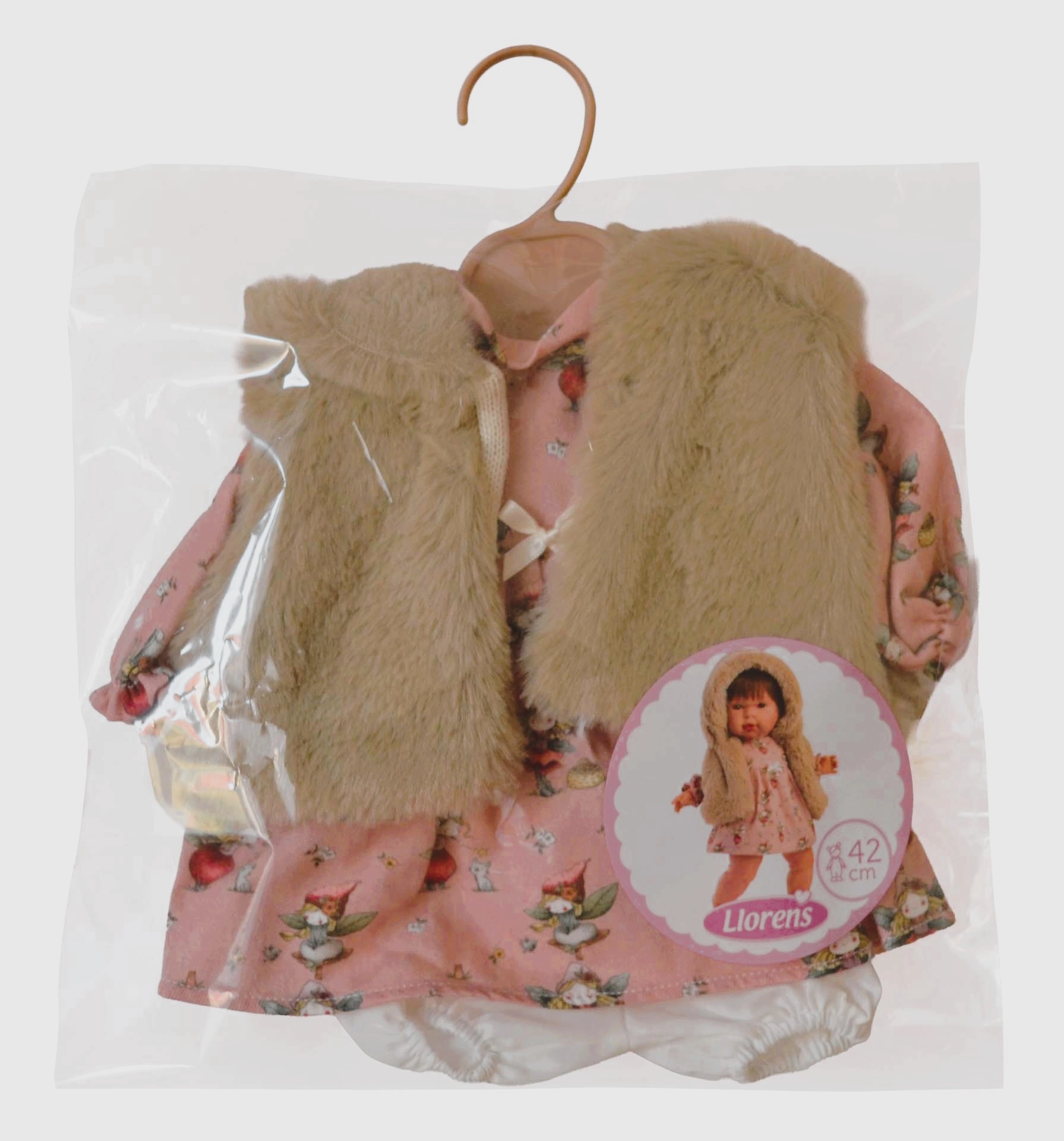 Nadopunite garderobu lutke stilskim setom Llorens za veličinu 42 cm. Ovaj 3-dijelni komplet odjeće je ručne izrade u Španjolskoj, pažljivo izrađen od kvalitetnih materijala i isporučuje se u praktičnom pakiranju s vješalicom. Idealan za djecu od 3 godine i izvrstan za razvoj mašte i fine motorike.