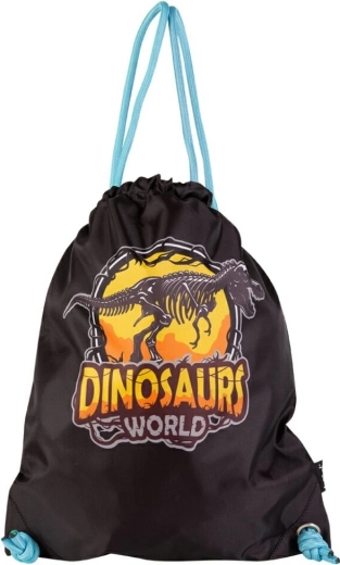 Praktična školska vrećica s motivom dinosaura idealna je za sportsku opremu i papuče. Izrađena od čvrstog, perivog materijala i sa zatezanjem pomoću uzica, koje ujedno omogućuju udobno nošenje na leđima.