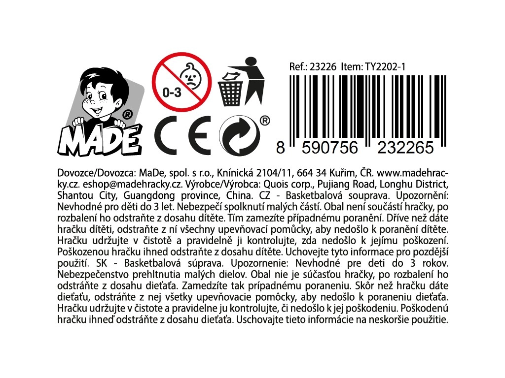 Uživajte u mnogo zabave s kompaktnim košem za košarku s priborom, idealnim za djecu od 3 godine. Zahvaljujući izdržljivoj plastičnoj izradi i dimenzijama 39 × 33 × 5 cm nudi jednostavnu montažu, dug vijek trajanja i sigurnu igru kod kuće i u vrtu.