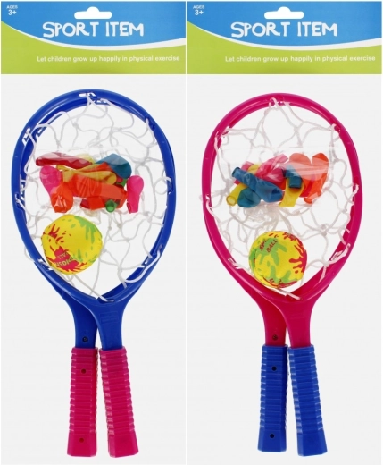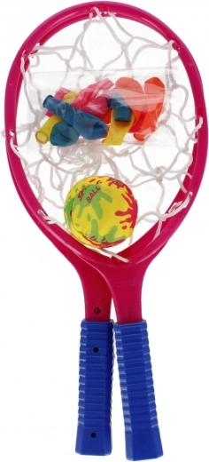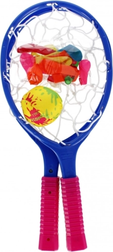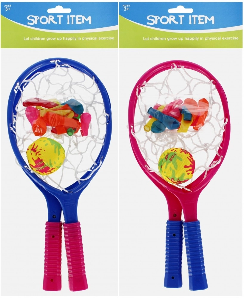 - 2 plastična reketa s mrežicom, 1 meka loptica, vodeni baloni (mješavina boja)