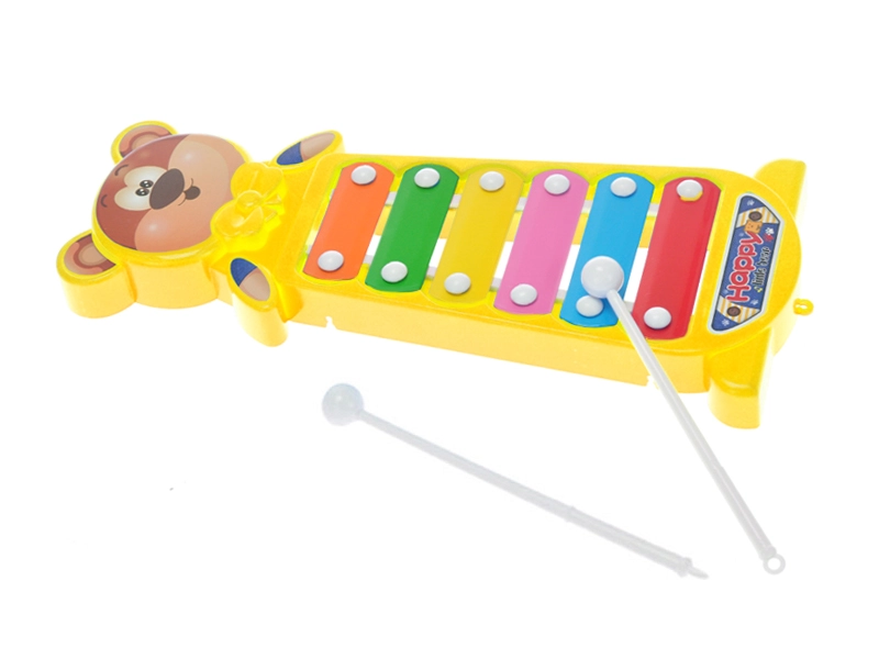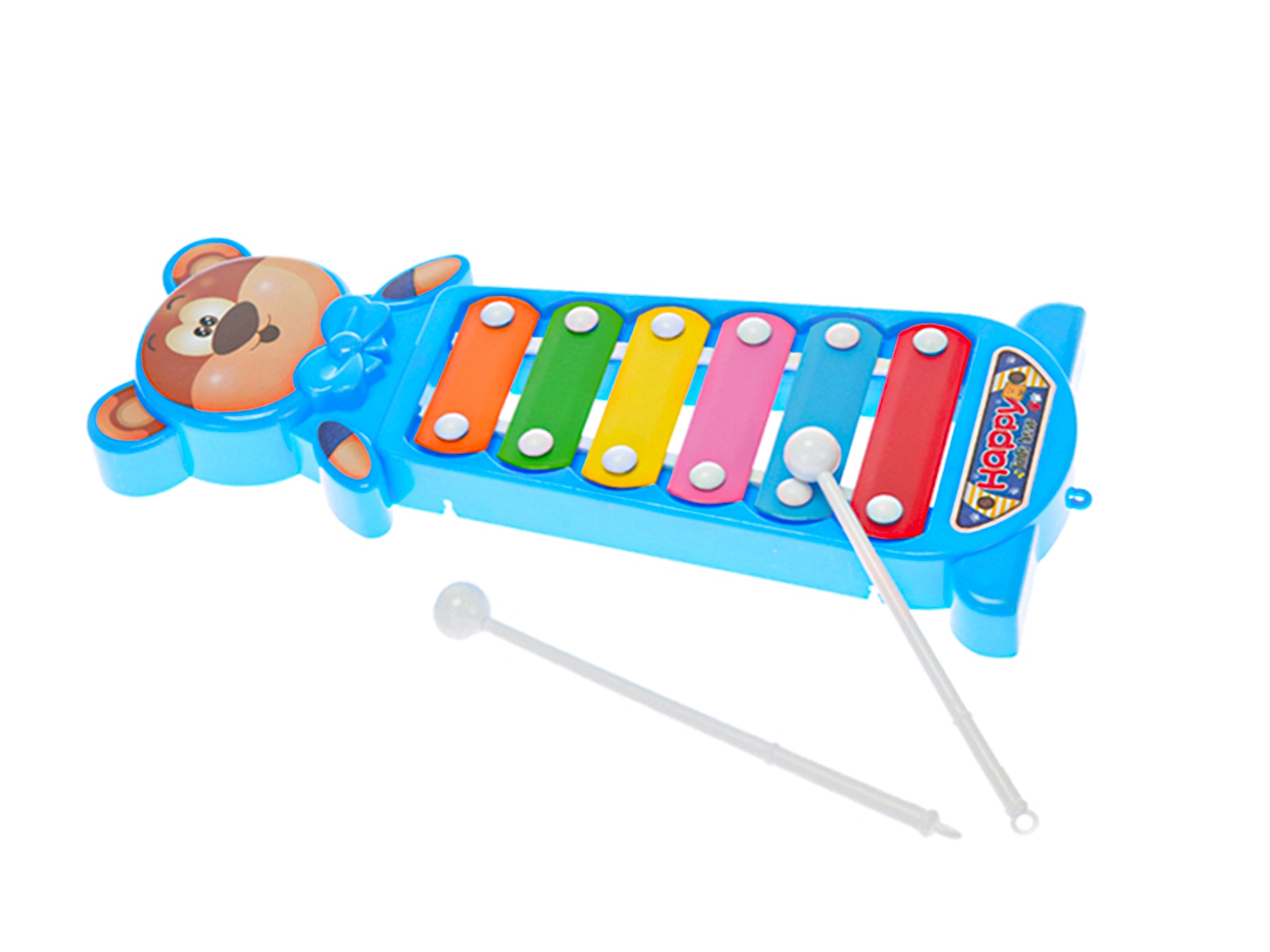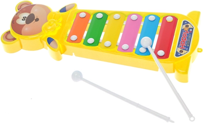 Slatki ksilofon u obliku medića razveselit će male glazbenike. Nudi 6 šarenih metalnih pločica za prve melodije i 2 plastične palice za lako sviranje. Zahvaljujući kompaktnoj veličini 28 cm idealan je za dječje ruke te potiče razvoj ritma, sluha i fine motorike.