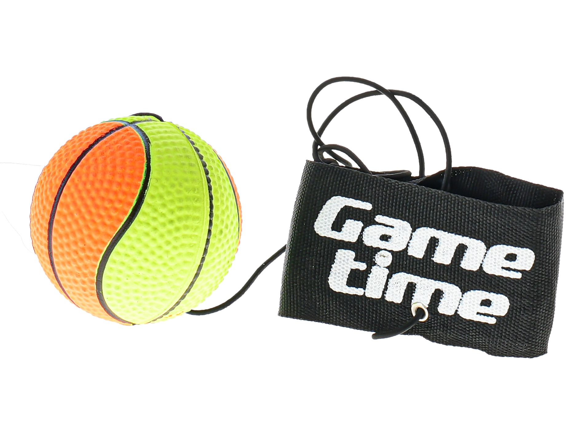 Zabavna i praktična trenažna loptica Gametime promjera 6 cm pričvršćena je na elastičnu gumu s udobnom narukvicom na čičak. Odlično razvija koordinaciju, reflekse i spretnost. Zahvaljujući teksturiranoj površini dobro leži u ruci i ne klizi, elastična uzica omogućuje beskrajno ponavljanje udaraca bez gubitka loptice, a podesivi remen lako pričvrstite na ruku ili nogu.