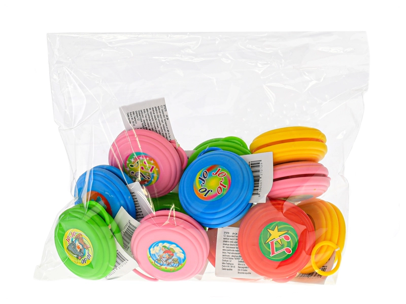Paket sadrži 12 jo-ja u pet živopisnih boja – izvrsno za zabave, natjecanja i kao mali pokloni.