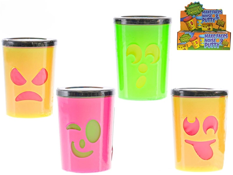 Otkrijte šareni sluz Putty King s licem – savršenu antistres igračku za djecu i odrasle. U čašici s izrezom emoji lica sluz pri stisku protječe kroz otvore i priređuje puno smijeha zahvaljujući smiješnim prdećim zvukovima. Sluz je meka, elastična i odlično se rasteže, stišće i oblikuje.