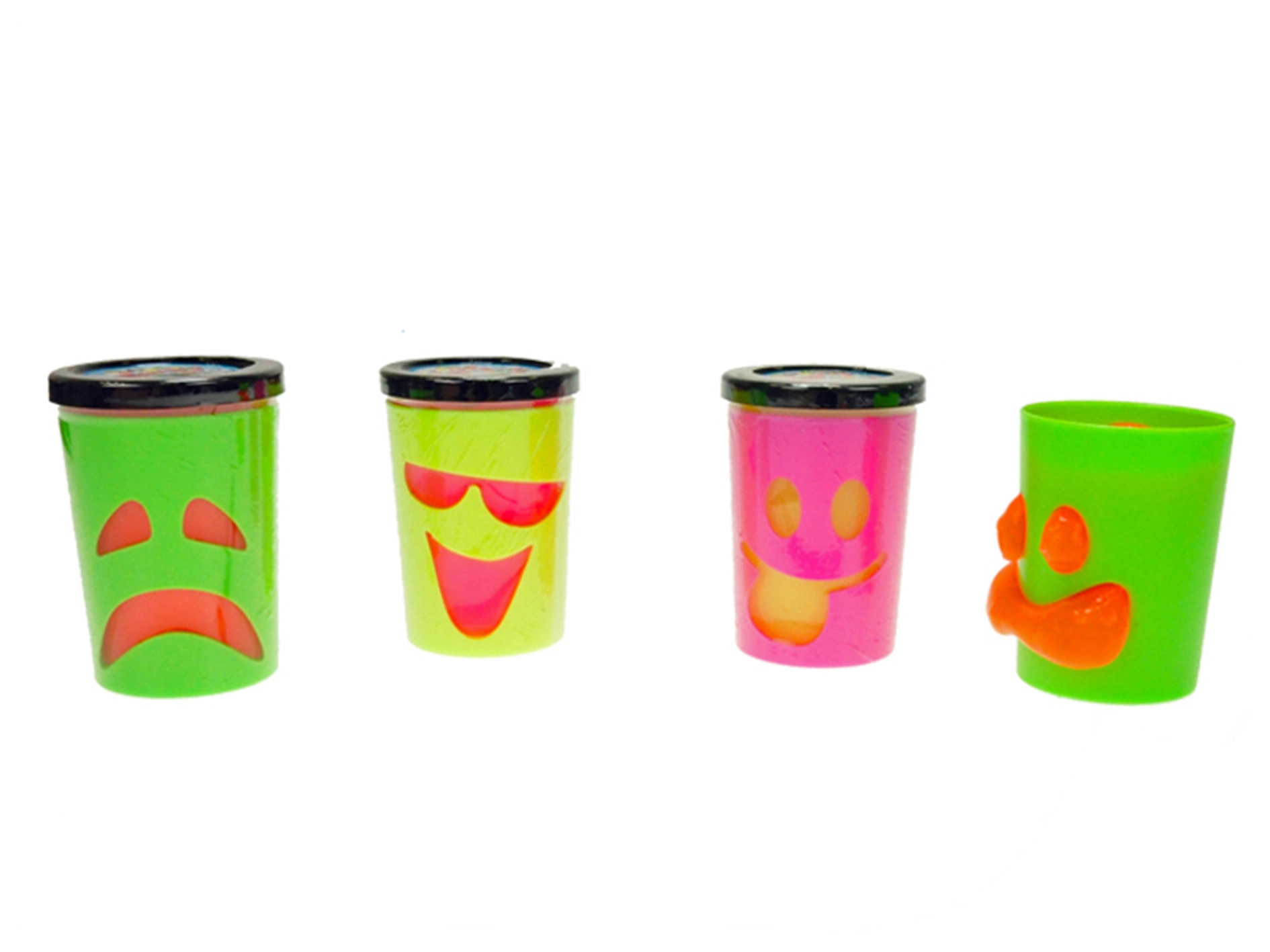 Praktična čašica s poklopcem osigurava jednostavno spremanje bez nereda. Jarke neonske boje mame na stalnu igru, a emoji izrazi lica dodaju originalan vizualni efekt. Sjajno kao mala nagrada, dar za proslavu ili zabavan rekvizit za party.