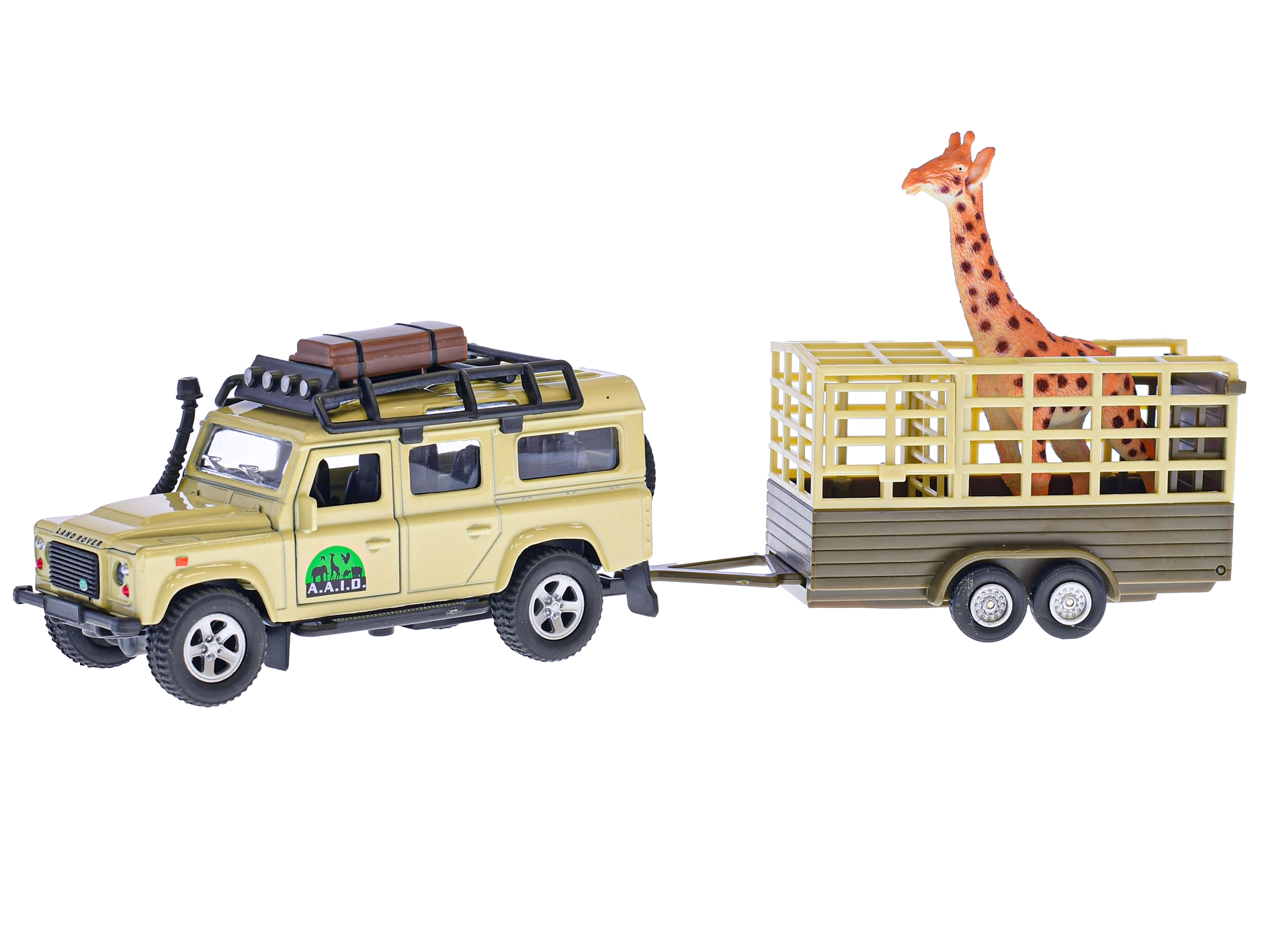 Ovaj realističan set oduševit će male ljubitelje životinja i automobila. Metalni model LAND ROVER DEFENDER s detaljnom izradom i funkcionalnim pull-back mehanizmom glatko vozi po ravnim površinama, a prikolicu je moguće u svakom trenutku odvojiti i ponovno priključiti. Figuricu žirafe djeca mogu prevoziti u prikolici i stvarati vlastite safari priče.