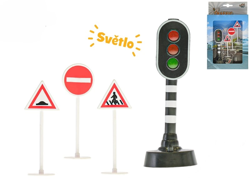 Realističan semafor visine 13 cm sa svjetlosnim efektima izvrstan je dodatak dječjim autićima. U pakiranju se nalaze i 3 prometna znaka, zahvaljujući kojima djeca mogu izgraditi vlastitu cestu i vježbati pravila cestovnog prometa kao u pravom gradu.
