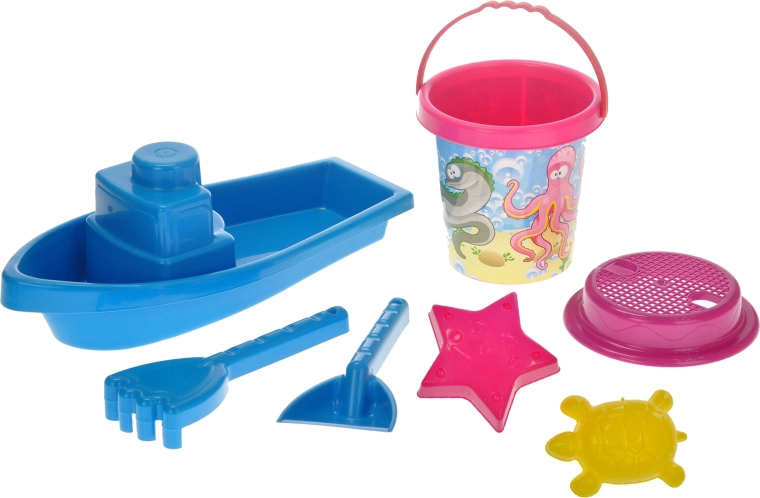 Komplet je izrađen od izdržljive, zdravstveno ispravne plastike koja podnosi i intenzivnu dječju igru. Dijelovi su lagani, dobro leže u dječjoj ruci i lako se čiste. Brodić oduševit će pri igri u vodi, dok će se kantica, lopatica, grabljice i sito pobrinuti za savršene pješčane kreacije.