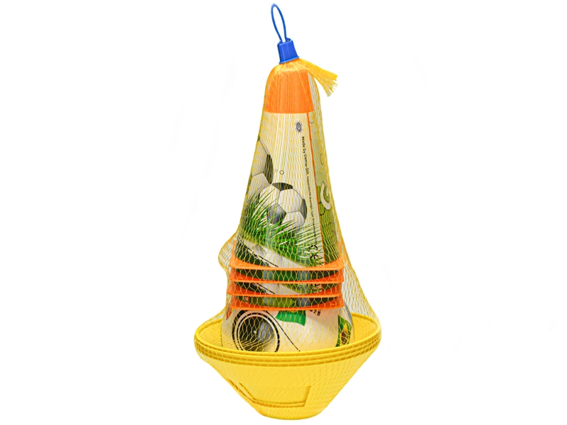 Praktična kombinacija 4 čunja (18 cm), meta i lagane lopte (12 cm) omogućuje stvaranje jednostavnih trening staza, poligona s preprekama i mini golova. Zahvaljujući izdržljivoj i laganoj plastici set je siguran za djecu te se lako prenosi i sprema.