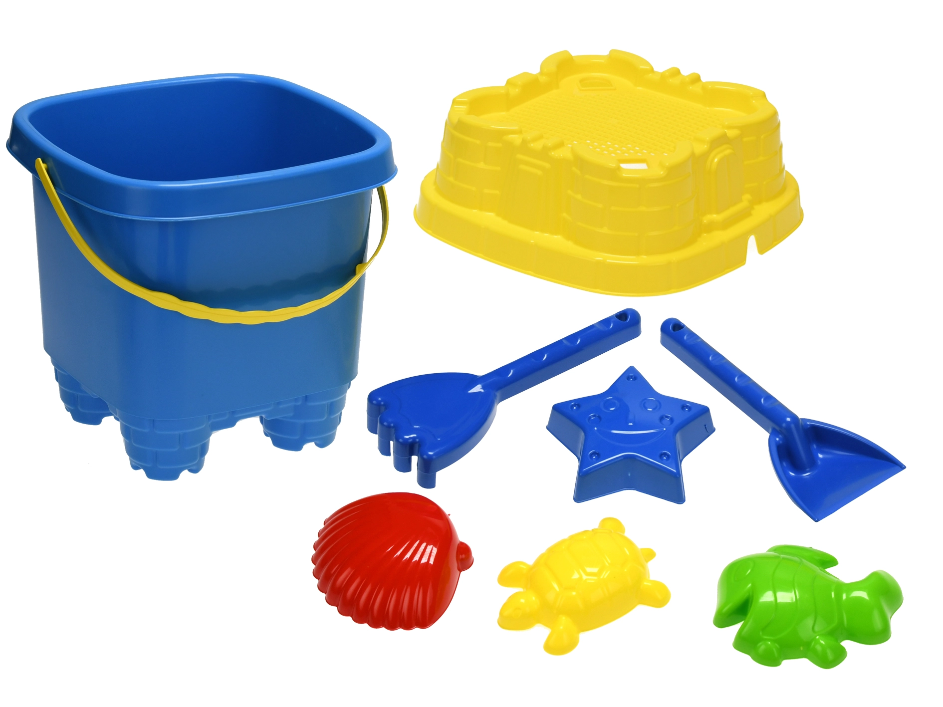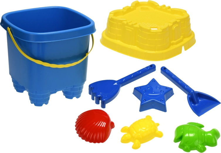 Sve su komponente izrađene od kvalitetne, lagane i izdržljive plastike koja podnosi svakodnevnu upotrebu. Praktično pakiranje u mrežici omogućuje brzo sušenje pijeska i jednostavno prenošenje bilo kamo.