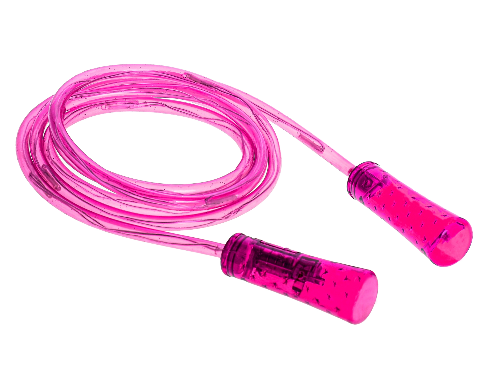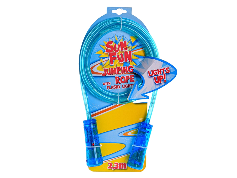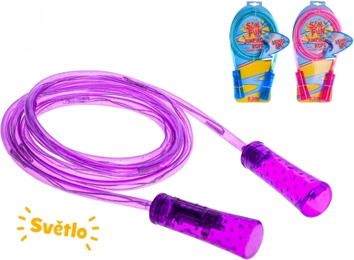 Uže duljine 210 cm lako se može prilagoditi osnovnim čvorom ili skraćivanjem kako bi odgovaralo različitim visinama. Kvalitetna plastika odolijeva uobičajenoj upotrebi u kući i na otvorenom. LED svjetla napajaju se baterijama u pakiranju, pa je uže spremno za trenutačnu upotrebu. Dostupno u tri boje – ružičasta, plava i ljubičasta – za odabir prema stilu.
