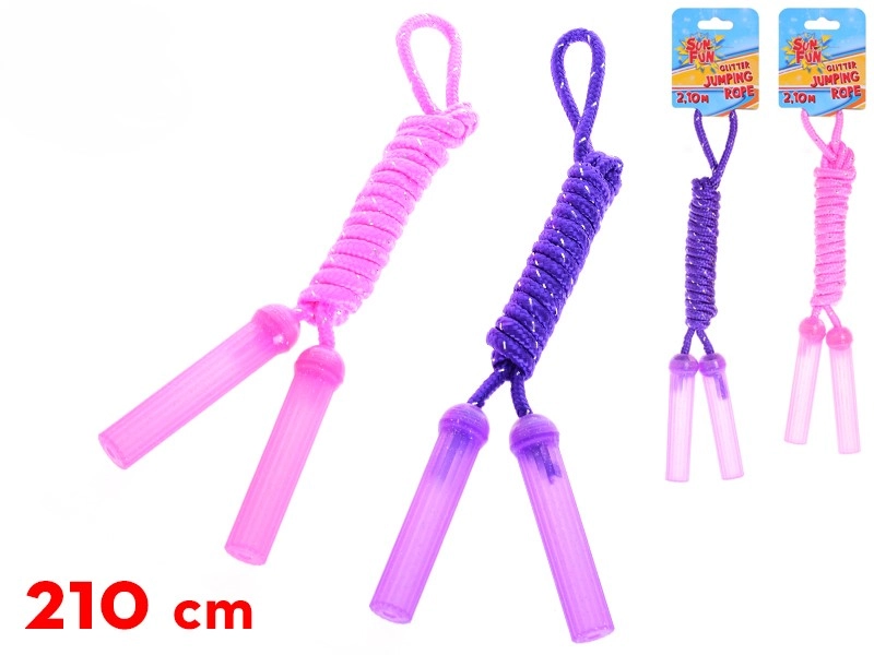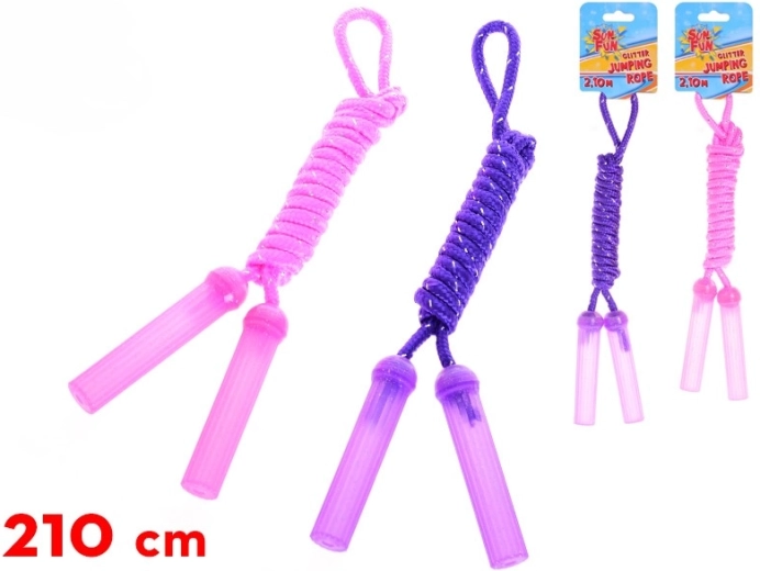 Uživajte u obilju kretanja i zabave s užetom za preskakanje iz kolekcije Sun Fun. Lagan plastični držač i izdržljivo sjajno uže duljine 210 cm idealni su za koordinaciju, kardio trening i razigrano učenje trikova. Dostupno u 2 boje – ružičasta i ljubičasta, prikladno za djecu od 4 godine.