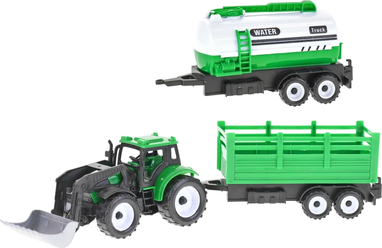 Priredite djeci sate zabave s realističnim traktorom na zamašnjak duljine 17 cm. Pakiranje sadrži traktor i 2 odvojive prikolice, a dostupne su 3 različite varijante alata – plug, bager i utovarivač. Igračka je idealna za male ljubitelje poljoprivredne mehanizacije te razvija finu motoriku, maštu i koordinaciju. Prikladno za djecu od 3 godine.