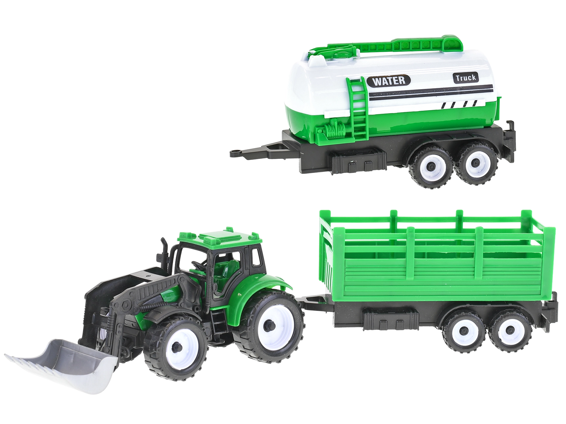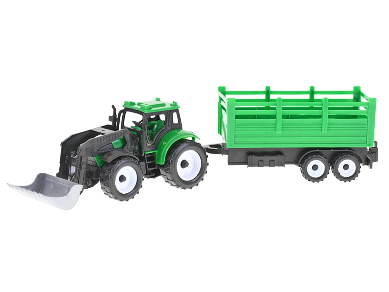Realistični traktor utovarivač sa zamašnjakom pruža autentičan doživljaj iz svijeta poljoprivredne tehnike. Zahvaljujući duljini od 17 cm odlično leži i u manjim rukama, a čvrsta izrada podnosi svakodnevnu igru. U pakiranju su 2 prikolice koje se lako mogu priključiti i odvojiti, a na izbor su 3 vrste dodatne opreme – plug, bager i utovarivač – za još više scenarija igre.