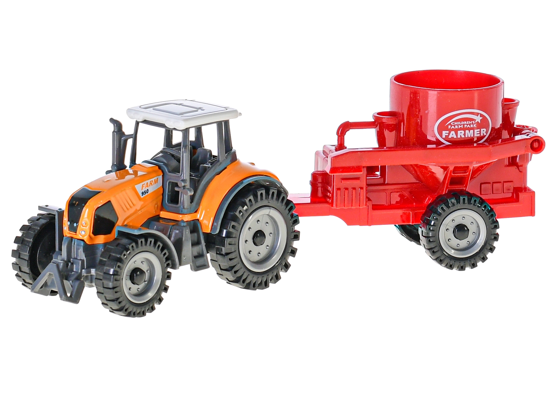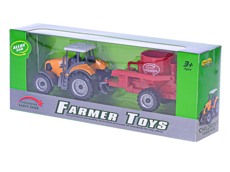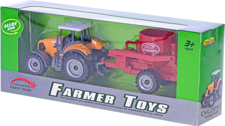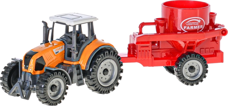 Metalni traktor s prikolicom duljine 19 cm izvrsna je igračka za male farmere od 3 godine. Nudi slobodan hod za lako upravljanje, izdržljivu metalnu konstrukciju i realističnu izradu. Zahvaljujući odvojivoj prikolici i izboru boja (crvena, narančasta, zelena) potiče kreativnu i realističnu igru.