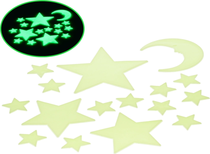 Stvorite svoju vlastitu noćnu nebnu pozadinu – samoljepljive zvijezde svijetle u mraku, lako se postavljaju na strop i zidove i pretvaraju dječju sobu u čarobnu galaksiju. Pakiranje sadrži 15 komada u različitim veličinama 4–12 cm. Prikladno za djecu od 3 godine.