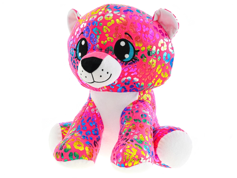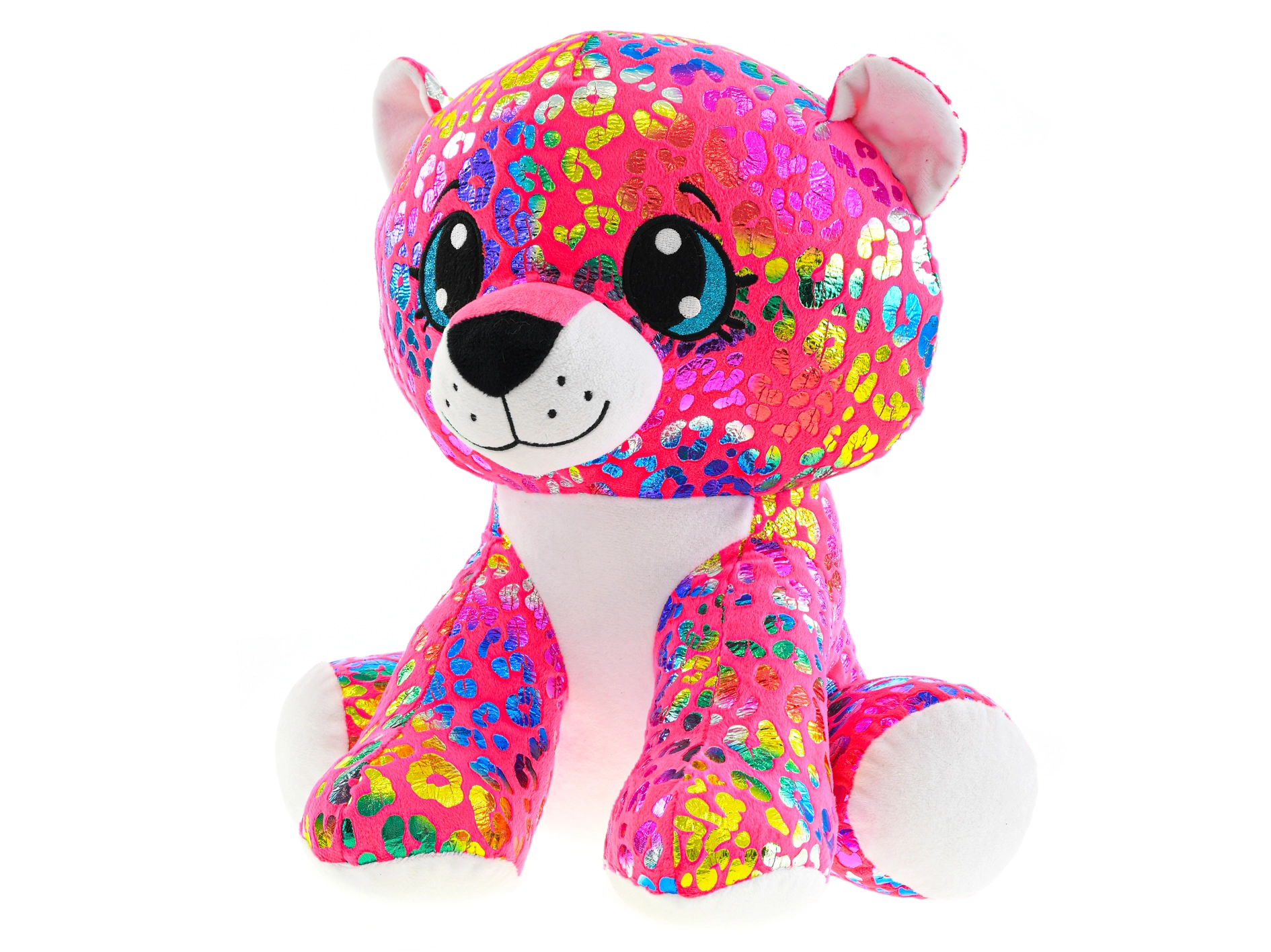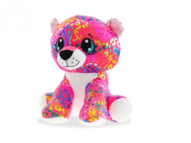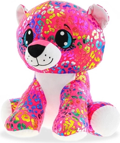 Ovaj šareni plišani leopard savršen je pratitelj za djecu – mekan je i baršunast, a zahvaljujući sjedećem obliku lako se drži i izlaže na polici. Njegove velike izvezene oči, svjetlucav uzorak i kontrastne bijele šape daju mu jedinstven izraz koji će djeca odmah zavoljeti.