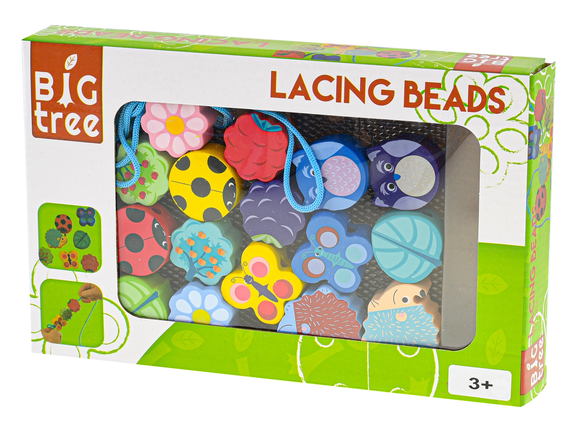 Set drvenih perlica Big Tree idealna je igračka za prve kreativne aktivnosti. Djeca mogu prema vlastitoj mašti nizati raznolike oblike i boje, čime razvijaju strpljenje, koncentraciju i osnovno logičko razmišljanje. Kvalitetno drvo s glatkom površinom i sigurnom obradom ugodno leži u dječjoj ruci i odolijeva svakodnevnoj upotrebi.