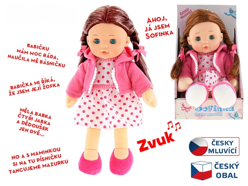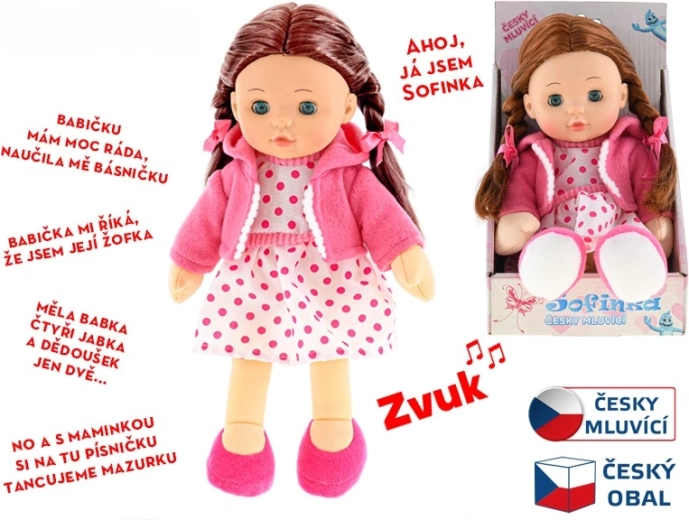 Lutka Sofinka idealna je pratiteljica za djecu od 3 godine naviše. Njezino mekano tjelešce ugodno je na dodir i poziva na maženje, dok realističan izgled sa smeđom kosom i treptajućim očima potiče dječju maštu. Sofinka također govori češki, što na zabavan način razvija komunikaciju i empatiju.